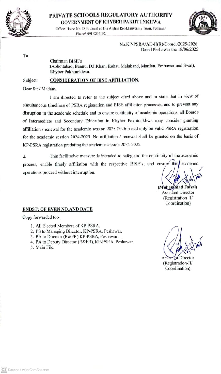 Consideration Of BISE Affiliation